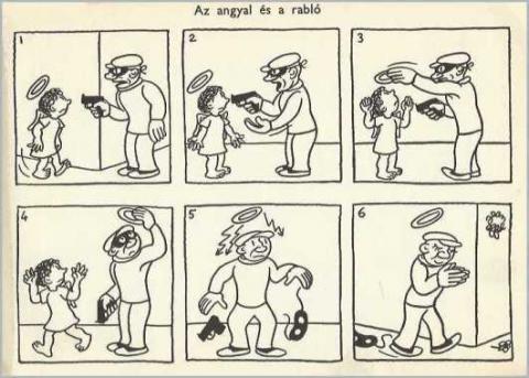 "A kis angyal talán a legnépszerűbb Effel minden műve közül. Figurája a második világháború viharos esztendőben, a náci megszállás idején született. Hirdetője akart lenni, és lett is, egy nyájasabb, humánusabb, boldogabb világnak. Ezeket a rajzokat is, mint Effel egész alkotó egyéniségét, a derűs optimizmus, gyengéd humor, egyszerű kifejezőkészség jellemzi. Megszeretjük a kis angyalt, mert olyan, amilyenekké mi szeretnénk lenni: jószívű, igazságos, hűséges. Gyermekbarátja révén ismerkedik meg a földi élettel. "Égi szemüvegén" át nézve világunk olykor elnéző, olykor kesernyés, legtöbbször jóízű mosolyt fakasztónak tűnik."
